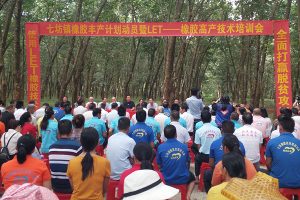 10月13日上午,由中道农林公司组织的“橡胶丰产计划动员暨LET橡胶高产技术培训会”在海南七坊镇橡胶丰产示范园举行。白沙县县委常委、宣传部长张志群,县政府副县长廖上强,中道集团董事长王孟堂,中道农林(海南)股份公司执行总裁梁伟彪,来自法国的嘉宾团组,白沙县农业局、科协、农技中心负责人,七坊镇党政主要领导及各村委、村民小组的负责人参加了活动。此举对进一步推广高效实用割胶技术,让农民脱贫致富意义深广。