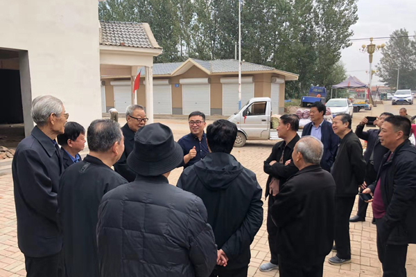 在新农村售楼处项目沙盘前,李宪锋总经理就项目规划、完成进度等向老干部们作了详细汇告。李总说,目前新农村前期规划基本完成,已初具规模。除建成上述设施外,还配套建有农村信用社、物流中转站、医疗卫生院、村办敬老院和村民休闲娱乐广场等公共服务设施,时尚超前,健康文明。目前,经过中道公司长期以来的投入和建设,已极大地改善了白寨村民的居住环境,营造了村民愉悦生活的祥和氛围,进一步提升了广大村民的生活质量。这是孟堂董事长饮水思源,致富感恩,回报家乡父老的成果。应当指出,在白寨新农村前期筹划和后期建设的整个历程中,都蕴含着各位老领导付出的心血汗水和拳拳爱心。在此,我特意代表董事长和公司全体员工,向各位表示崇高的谢意!