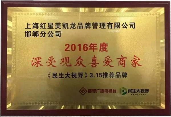 在邯郸所有家居建材商场中,仅红星美凯龙一家获得“2016年深受观众喜爱商家”殊荣,作为优秀企业作出诚信经营的承诺,以示决心,共同维护消费者的权益。
