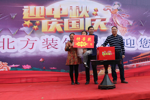新北方装饰城继今年五·一“把汽车开回家”、七·一“东南亚双人浪漫之旅”消费活动之后,又在“国庆”“中秋”双节期间隆重推出了“感恩钜惠,双节同庆——买建材,送豪礼”有奖促销活动。10月1—8日活动期间,新北方装饰城所在地——中道大厦又一次成了众多消费者关注的焦点,人们前往休闲、观赏、抽奖、购物,播洒了希望,也收获了喜悦。八天活动,商场客流量与商户销售额都有了明显增长。 本次活动设特等奖1名,4999元;一等奖3名,各2600元;二等奖10名,各1000元;三等奖16名,各600元;四等奖30名,各一份价值80元民品冷鲜肉。进店有礼,惊喜连连。 为使活动取得圆满成功,在总公司领导的大力关怀支持下,公司副总兼新北方装饰城总经理高振寰带领新北方装饰城一班人,从9月初就开始积极谋划,分析调研,多次召开会议,周密策划部署,制定了可行预案。大家心往一处想,劲往一处使,牺牲休息,任劳任怨,兢兢业业,坚守一线。为了方便客户投放奖券,在中道大厦和“新北方二期”天井分别设立了奖券投放箱。还将装饰城员工分成若干小组,明确任务,责任到人,分工合作,志在成功。大家一个共同的目的是潜心为商户服好务,让消费者收获诚信,通过活动,进一步提高市场的知名度和品牌市场占有率,让新北方装饰城在当前激烈的市场竞争中立于不败之地。 在舆论宣传方面,新北方装饰城一班人更是不遗余力,别出心裁,采取多种形式力争使宣传扩面、进户、入心。一是印制了一批新北方装饰城导购手册与活动彩页,责成专门人员在市内街道居民密集处和即将竣工的住宅小区进行发放;二是利用市内300辆公交车制作车体广告,广为宣传,受到众多商户的赞誉;三是在大厦下沉广场制作了“新北方装饰城欢迎您”大型昭示牌,使市场方位更加显眼易找;四是提前连续在中道大厦巨幅电子屏幕上滚动播放活动内容,以期达到家喻户晓,人人皆知。 同时,他们还对装饰城环境进行了美化、亮化、净化,重新规范了停车位,布置了彩拱门,安插了彩旗,尽力营造节日喜庆氛围。 8日下午4时许,活动进入抽奖阶段,五大奖项60多名奖项花落有主,在主持人的朗声宣布中,一个个中奖者兴高采烈地奔向舞台领取了自己的奖品。当人们期待已久的特等奖中奖号码即将揭晓时,现场更是暴发出热烈的掌声,所有人的注意力都集中在了主持人手中的奖券上,整个现场的气氛达到了高潮。号码一宣布,一位女士带着一个小女孩,步快跑到舞台上,从主持人手里接过了特等奖获奖证书,她无比高兴和激动地说,“我太幸运了,没想到大奖能轮到我,在此我十分感谢中道公司,感谢新北方装饰城领导和全体员工!” 抽奖当天,演出了精彩的文艺节目,声势宏大,美轮美奂,精彩纷呈,美不胜收。
