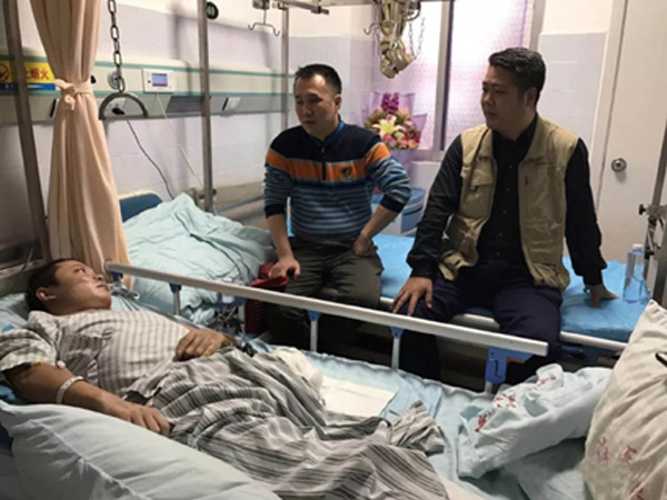 图为商会秘书处派人到医院看望伤者。