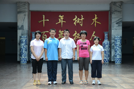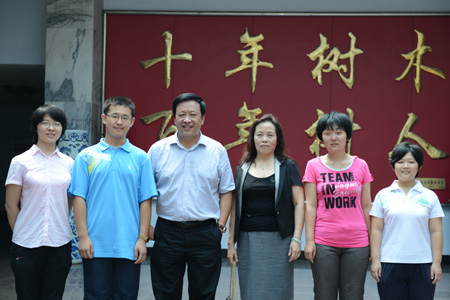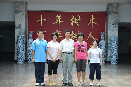 邯郸市第一中学副校长崔仲房、教育处主任刘天龙与获奖学子合影
