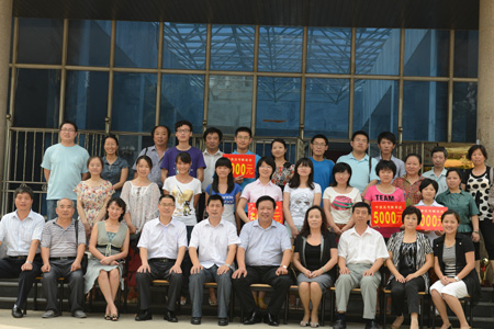 中道公司董事长王孟堂及夫人、副总王书梅、于爱苹、白方文和教育部门领导及学子共同合影留念