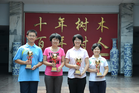 邯郸市第一中学副校长崔仲房与获奖学子合影